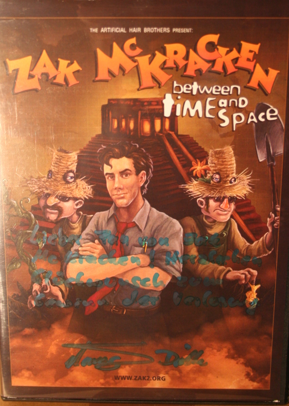 Exklusiv und einmalig hier auf dieser Seite: ein von Marvel handsigniertes Exemplar der in Kleinstauflage und nur an Teilnehmer und Mitwirkende ausgegebenen DVD Zak McKracken - Between time and space(zak2.org) - mit Widmung. Da Verkauf & Versteigerung nicht erlaubt sind (und wohl keiner sein Exemplar hergibt) sollte diese Chance also genutzt werden.
